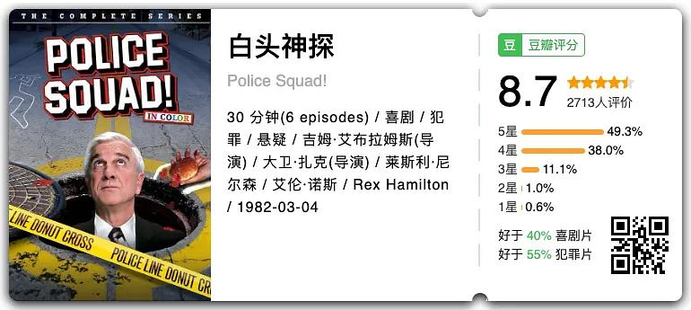 莱斯利·尼尔森(Leslie Nielsen)扮演的白头神探弗兰克·德雷宾一边办案,一边出糗,是很多人的童年回忆。