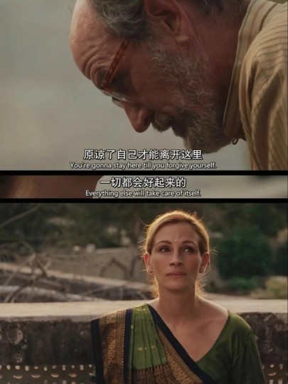 她并没有"解决"任何问题,只是学会了与问题共存。那些曾经让她夜不能寐的婚姻创伤,现在变成了可以平静审视的过往章节。这份和解,让她得以彻底释怀,放下过去的包袱,原谅彼此,从而为未来的新生腾出空间。灵修之旅,正是伊丽莎白借由祈祷与静默,深入内心,实现自我疗愈与和解的深刻过程。