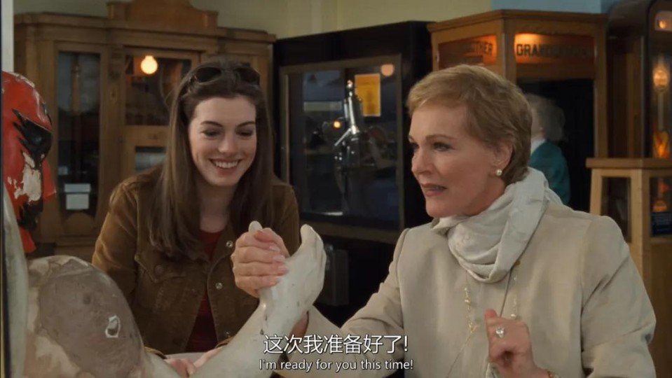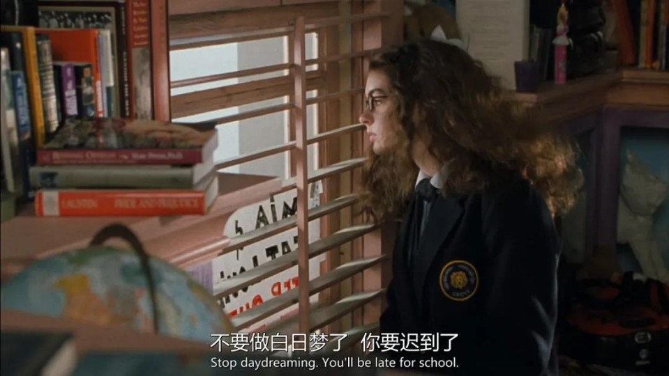 故事开始的安妮海瑟薇,完全社恐一枚,在学校里头也只有一个怪咖死党,说白了,在学校就是被边缘化的一个。