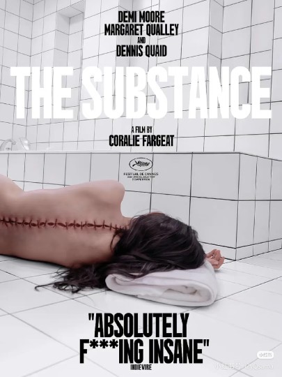 **一、个人观感** 看过奥斯卡最佳影片《阿诺拉》之后再看这部,感触更深了,从设定到演技,到视听手法,再到本片的现实意义,都是前所未有的震撼。 能够理解为什么本片在戛纳首映结束后,赢得了全场观众起立鼓掌长达13分钟(是本届戛纳全体鼓掌时间最长的一部片),因为拍得实在是太好了。 一个高概念的身体恐怖片,以男凝反讽男凝的表现形式,聚焦当代女性困境,无差别地讽刺每个人: 物化女性的男性,为所谓“美”而不择手段的女性,以及由这些男性女性组成的奥斯卡评委团。 在观影过程中,我甚至感觉自己也被这片讽刺了,因为我在看到“MONSTERO ELISASUE”的字幕的时候笑了一下。 当然,本片的缺点还是有的,个人认为最后血浆乱喷的场面处理得不是很好,虽然可能是为了表现对“美”的过度追求会适得其反,但有点为了cult而cult的感觉。 拍摄手法也很值得分析,尤其是前期,没有一帧是浪费的,但这里就不详细说了,因为本身看得也比较晚,想必很多更专业的影评已经解析过了。