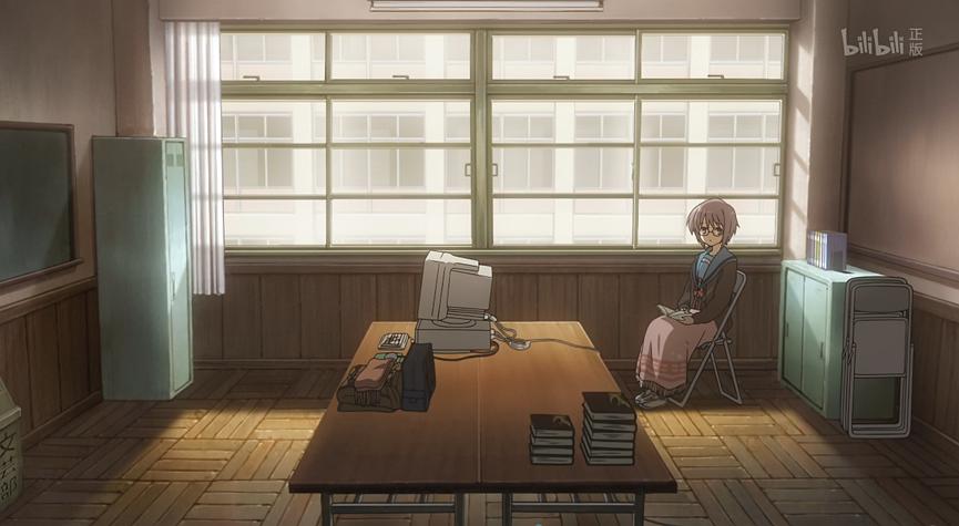 比如《凉宫春日的忧郁》,其人物与背景的美术风格差异明显:人物勾线清晰明确,与背景完全区分开,且人物阴影的特定区域十分突出;而背景的阴影色调更柔和,多通过颜色深浅渐变呈现,房间与物体的界限也更模糊。这种设计的好处是能突出角色在画面中的存在感,且京都动画的作品一直沿用这种风格。
