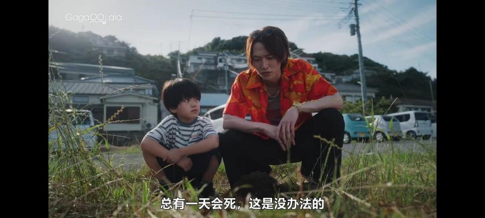 然后他发现这个男人:虽然吵着闹着要自己喂他吃饭团吃泡面,但是被烫到弹起来也不曾放下手中被托付的雏鸟,雏鸟死了会给他建坟,烧香,安慰悲伤的孩子,拿衬衫给他擤鼻涕;虽然抢小孩的钓竿假装在钓鱼,实则找了个风水宝地当葬身之地,但是发现没死成还是会好好地把钓竿还给俩孩子,附带钓上来的一大桶鱼(真男人从不空军是吧?不过剧版删除了这一段);会请偶然遇见的老爷爷和陪酒女喝啤酒,从来也不会勉强不愿意的女人(但是会勉强不愿意的男人是吧?);虽然从头到尾都在抱怨,还是会不明所以地跟着受跑到一座鸟不生蛋的小海岛上给不认识的人除草扫墓……